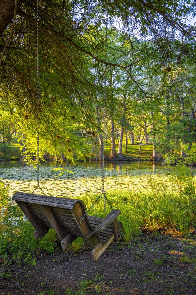 Historic cottage on the Medina River - fire pit with Adirondack chairs, riverside charcoal grill, screened porch, rocking chairs & riverside tree swing make it the perfect place to relax. Two bedrooms & a loft - with spectacular river views - comfortably sleeps six. 7 minutes on foot from charming downtown Castroville and 2 minutes on foot from Koenig Park. 25 minutes to Sea World & 35 minutes to Fiesta Texas or enjoy swimming, fishing, or kayaking (if you bring one along) in the river.